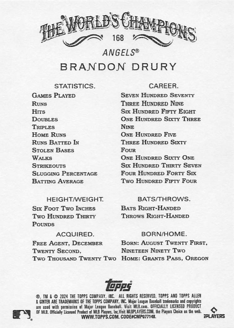 2024 Topps Allen & Ginter Mini Brandon Drury #168