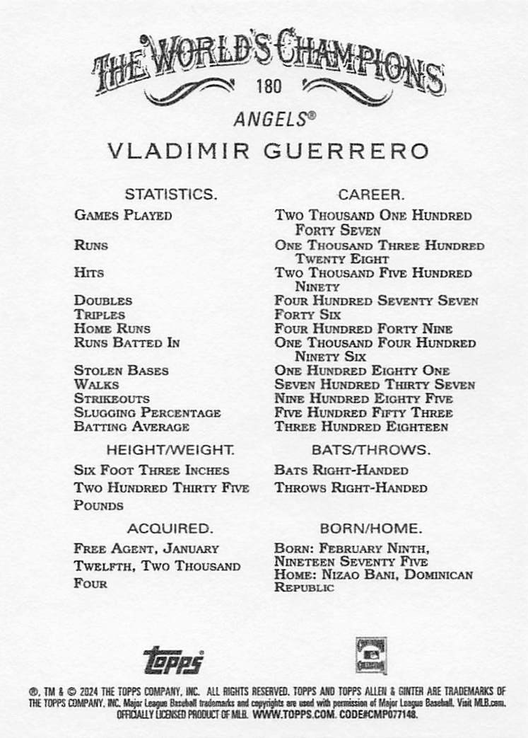 2024 Topps Allen & Ginter Vladimir Guerrero #180