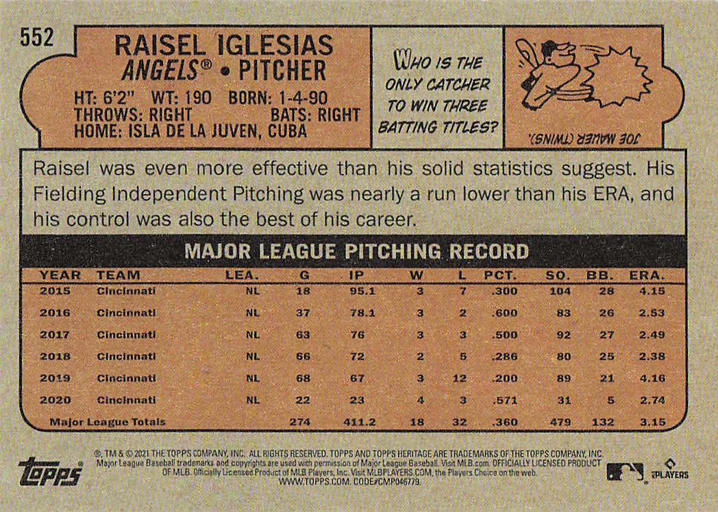 2021 Topps Heritage Baseball Raisel Iglesias #552
