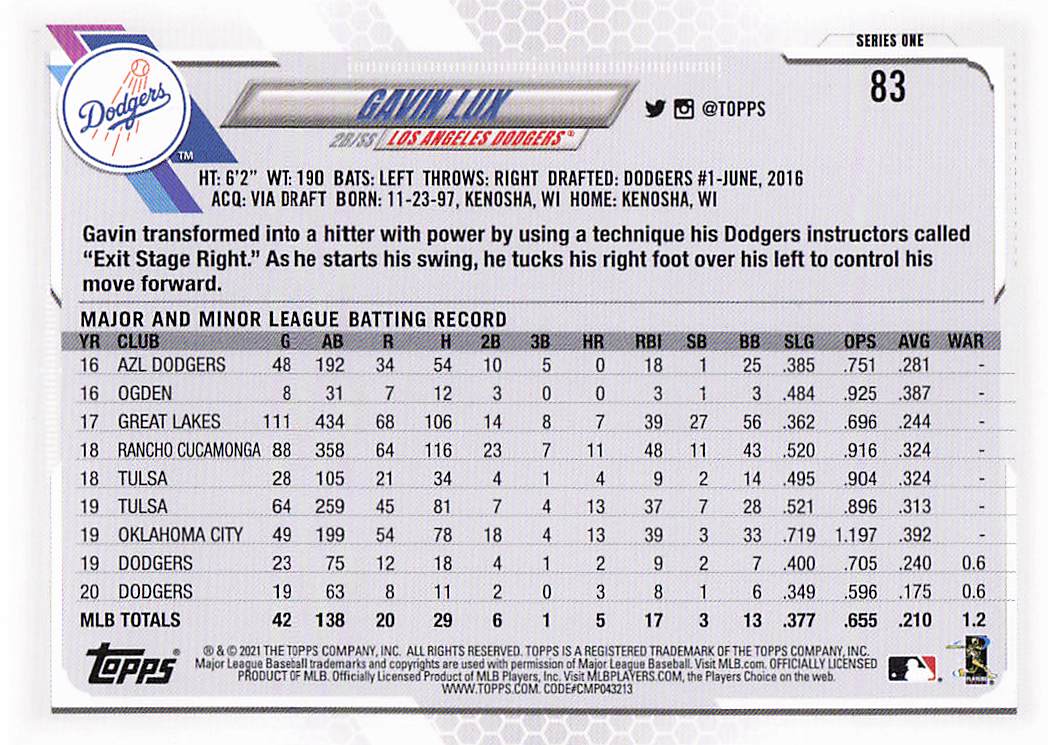2021 Topps Series 1 Gavin Lux #83