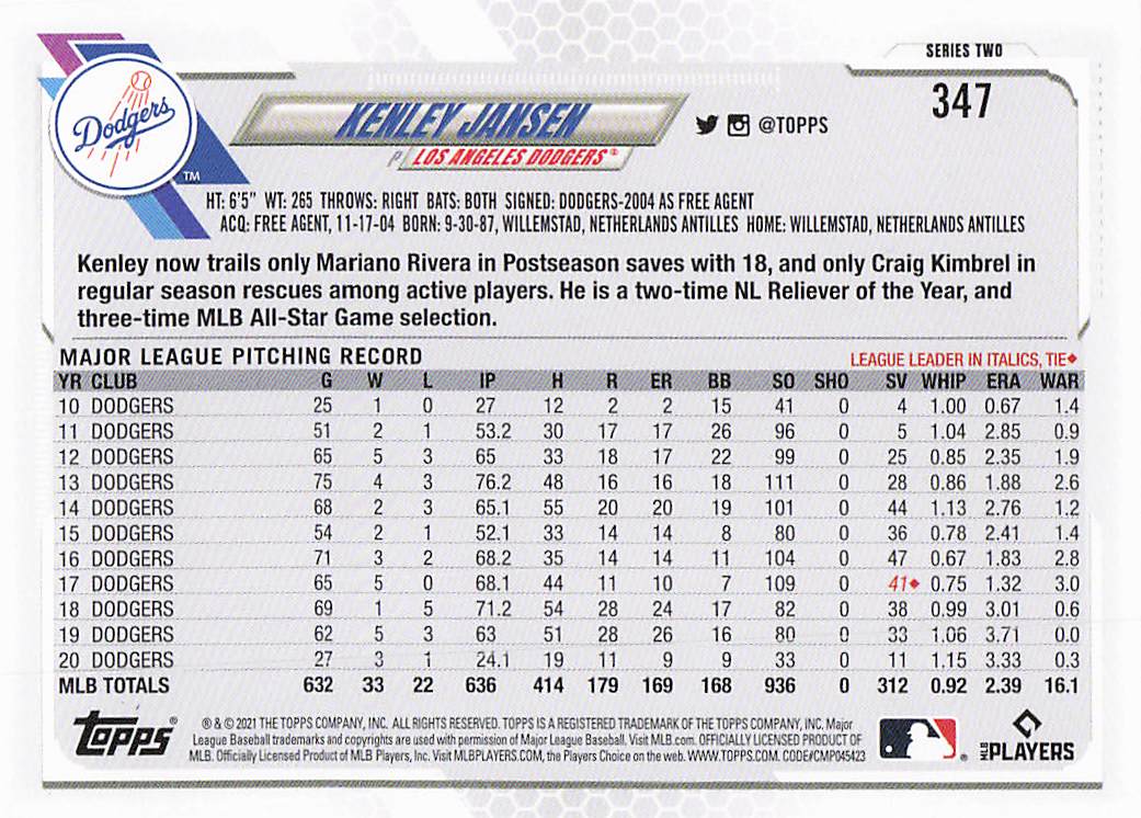 2021 Topps Series 2 Kenley Jansen #347