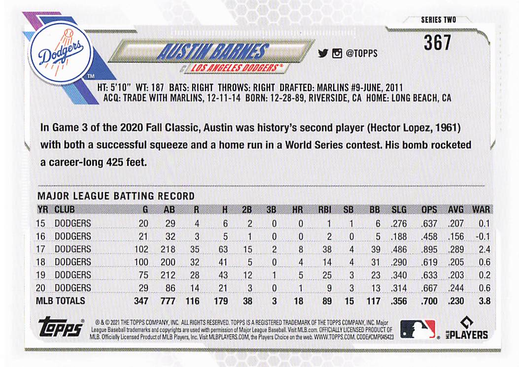 2021 Topps Series 2 Austin Barnes #367
