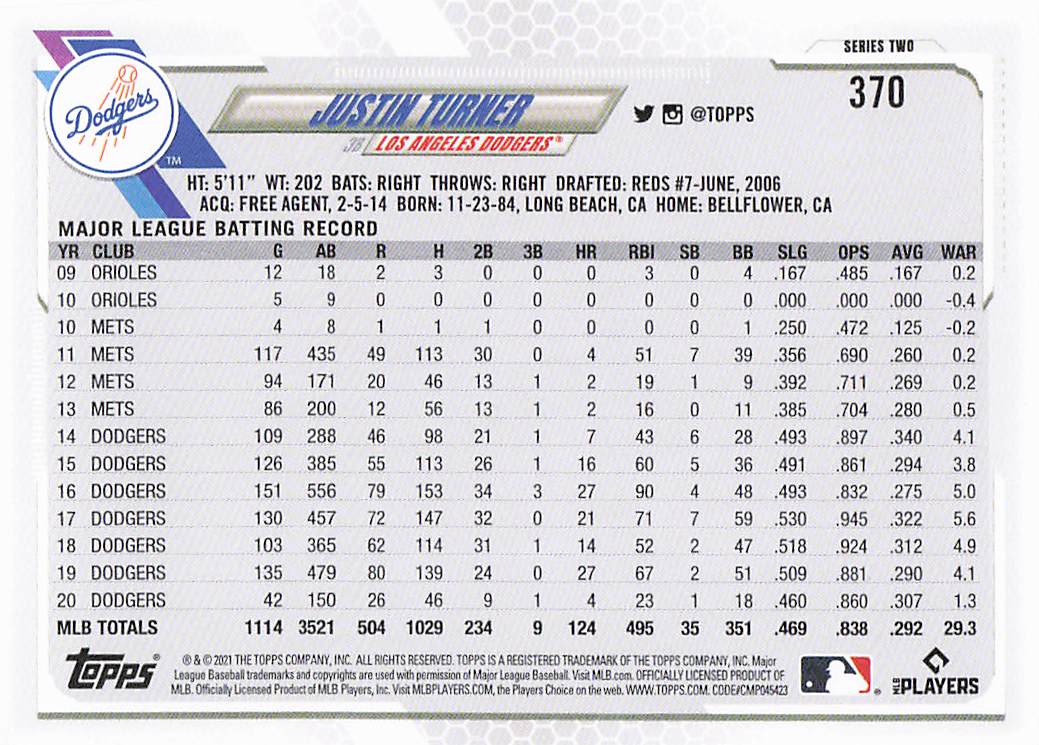 2021 Topps Series 2 Justin Turner #370