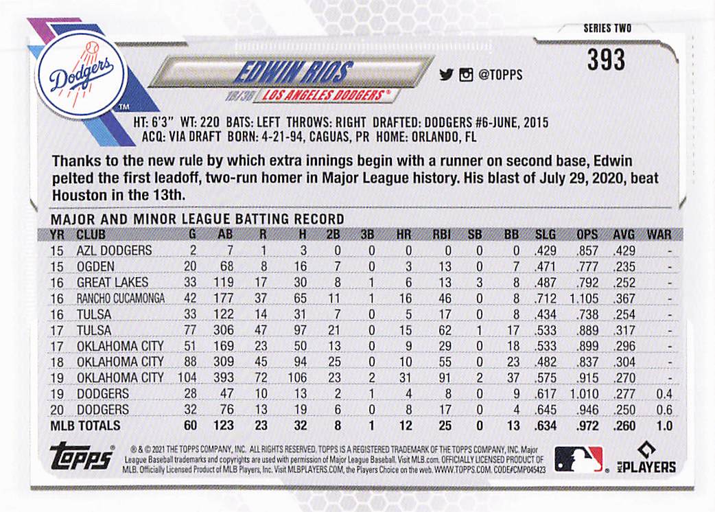 2021 Topps Series 2 Edwin Rios #393