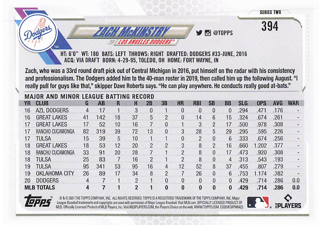 2021 Topps Series 2 Zach McKinstry #394 RC