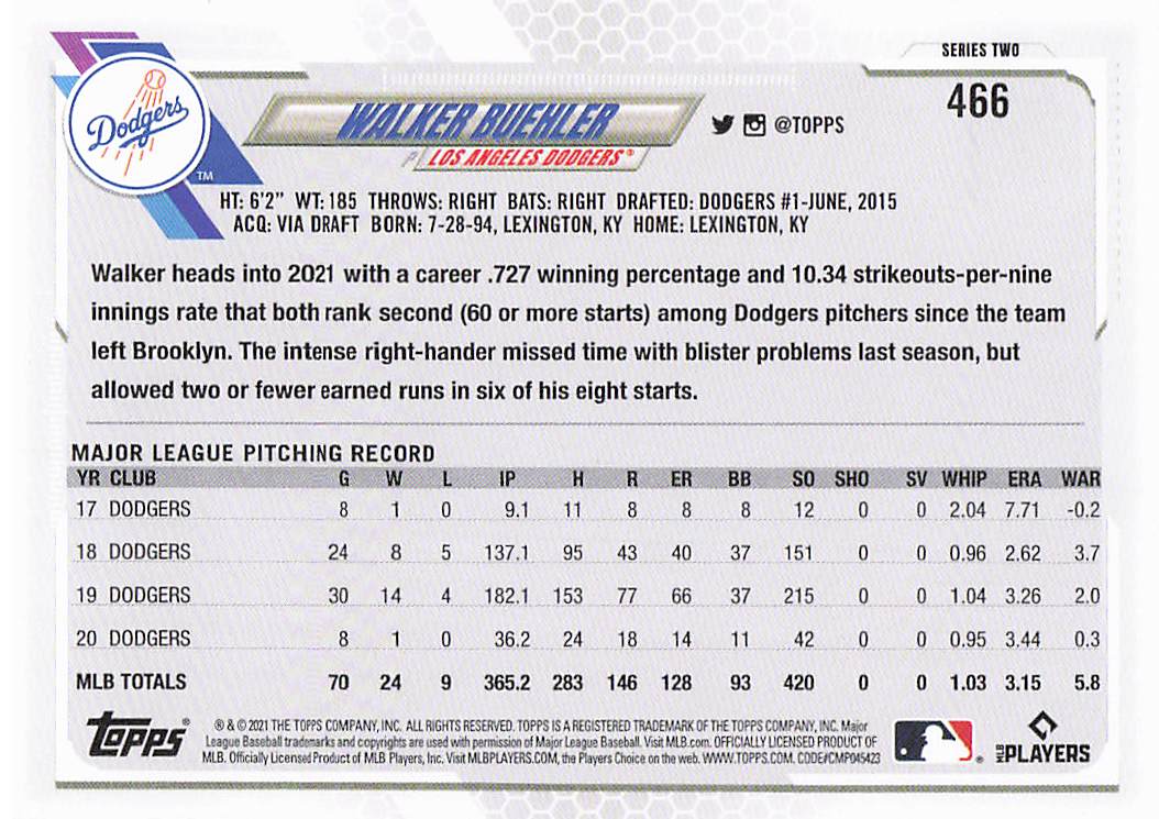 2021 Topps Series 2 Walker Buehler #466
