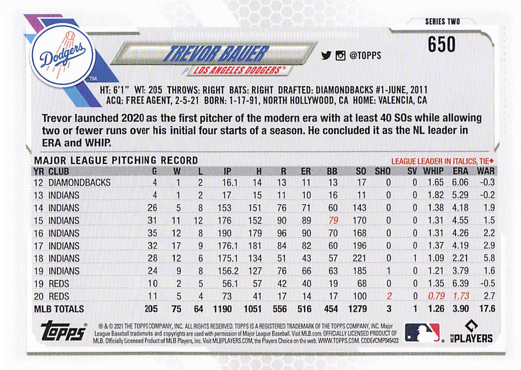 2021 Topps Series 2 Trevor Bauer #650