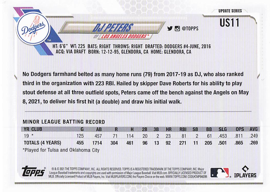 2021 Topps Update DJ Peters #US11 RC