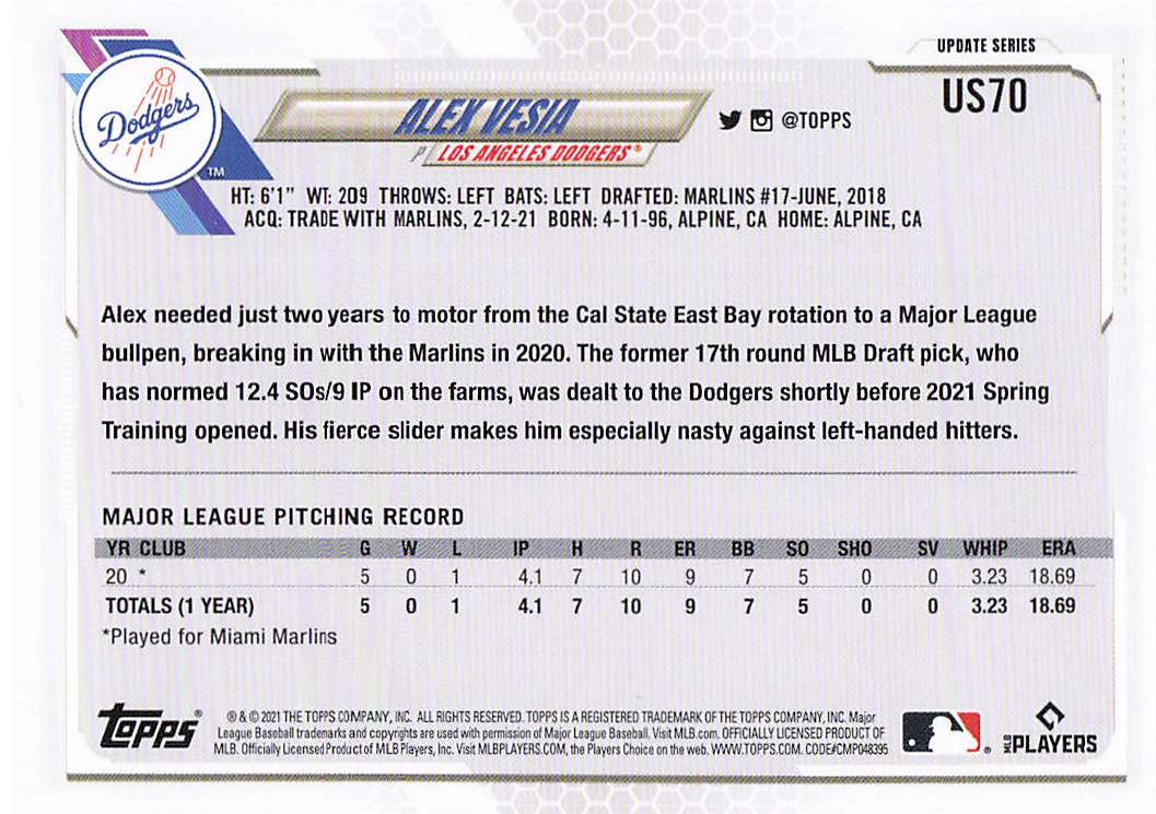 2021 Topps Update Alex Vesia #US70 RC