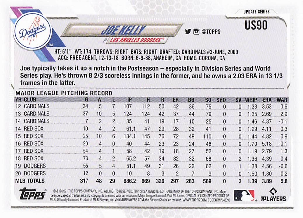 2021 Topps Update Joe Kelly #US90
