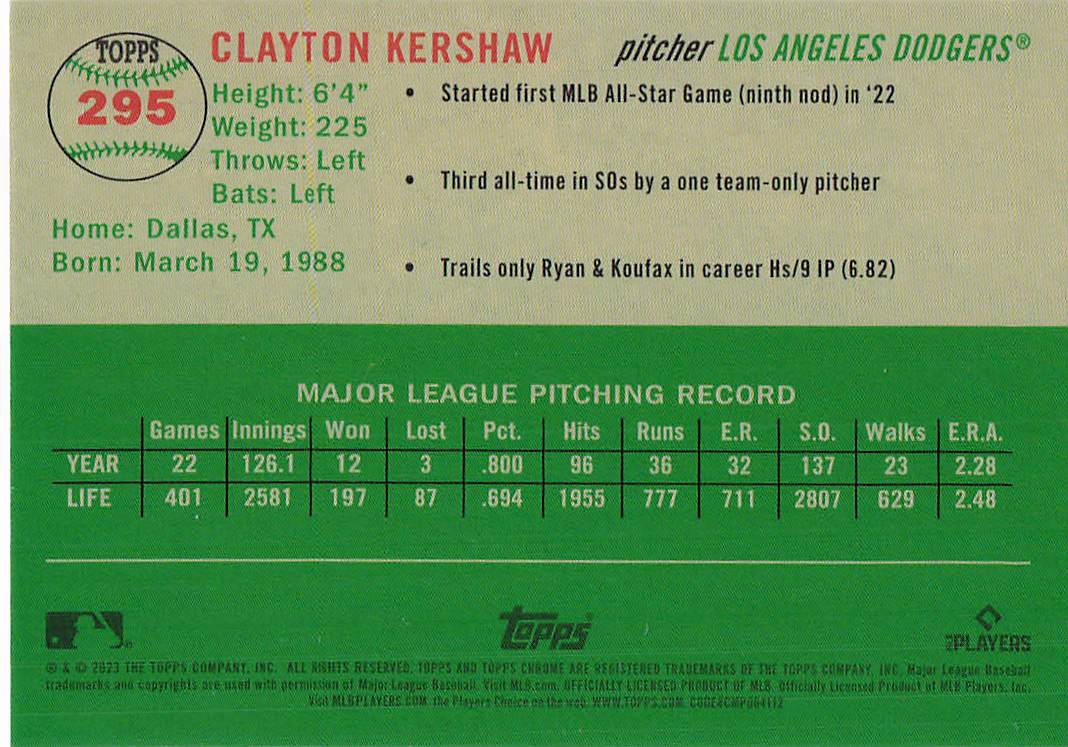 2023 Topps Chrome Platinum Anniversary Baseball Clayton Kershaw #295