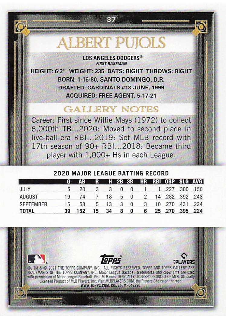 2021 Topps Gallery Printer Proof Albert Pujols #37