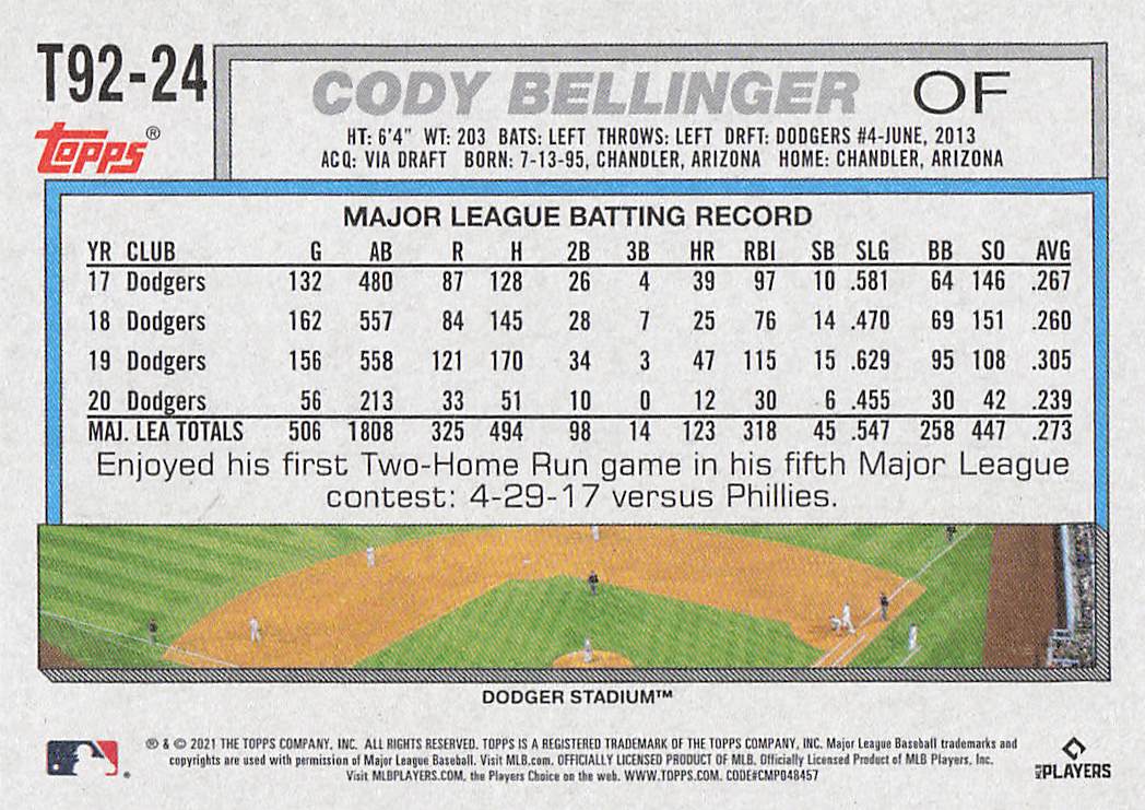 2021 Topps Update Series 1992 Topps Redux Cody Bellinger #T92-24