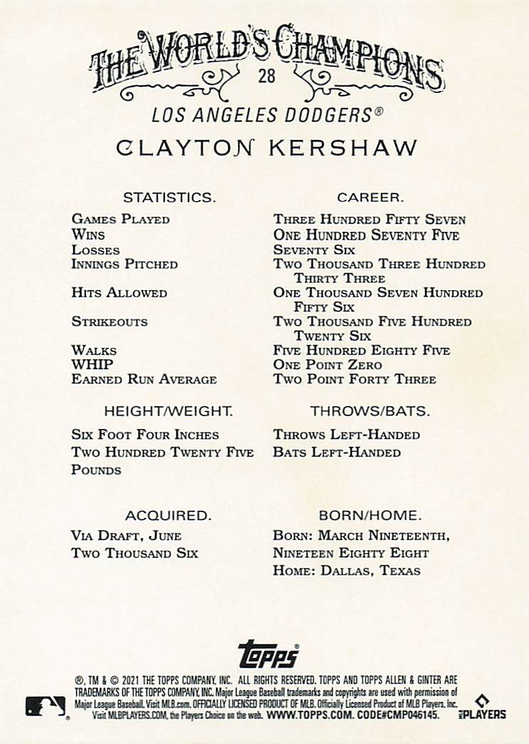 2021 Topps Allen & Ginter Silver Portrait Clayton Kershaw #28