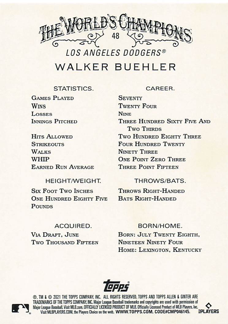 2021 Topps Allen & Ginter Silver Portrait Walker Buehler #48