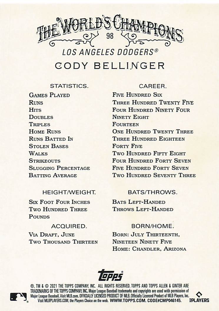 2021 Topps Allen & Ginter Silver Portrait Cody Bellinger #98