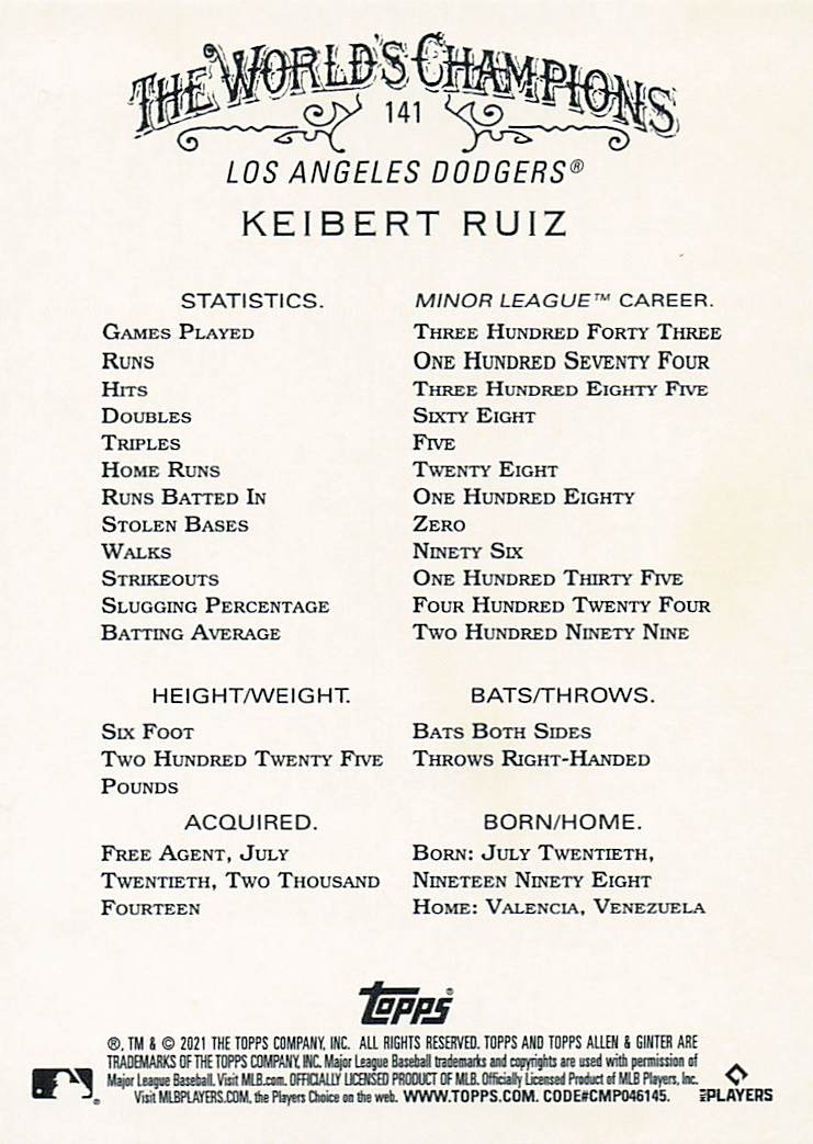 2021 Topps Allen & Ginter Silver Portrait Keibert Ruiz #141 RC