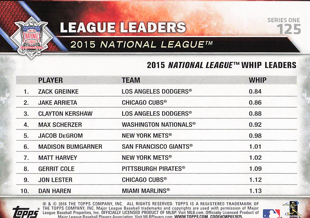 2016 Topps NL League Leaders Zack Greinke - Jake Arrieta - Clayton Kershaw #125