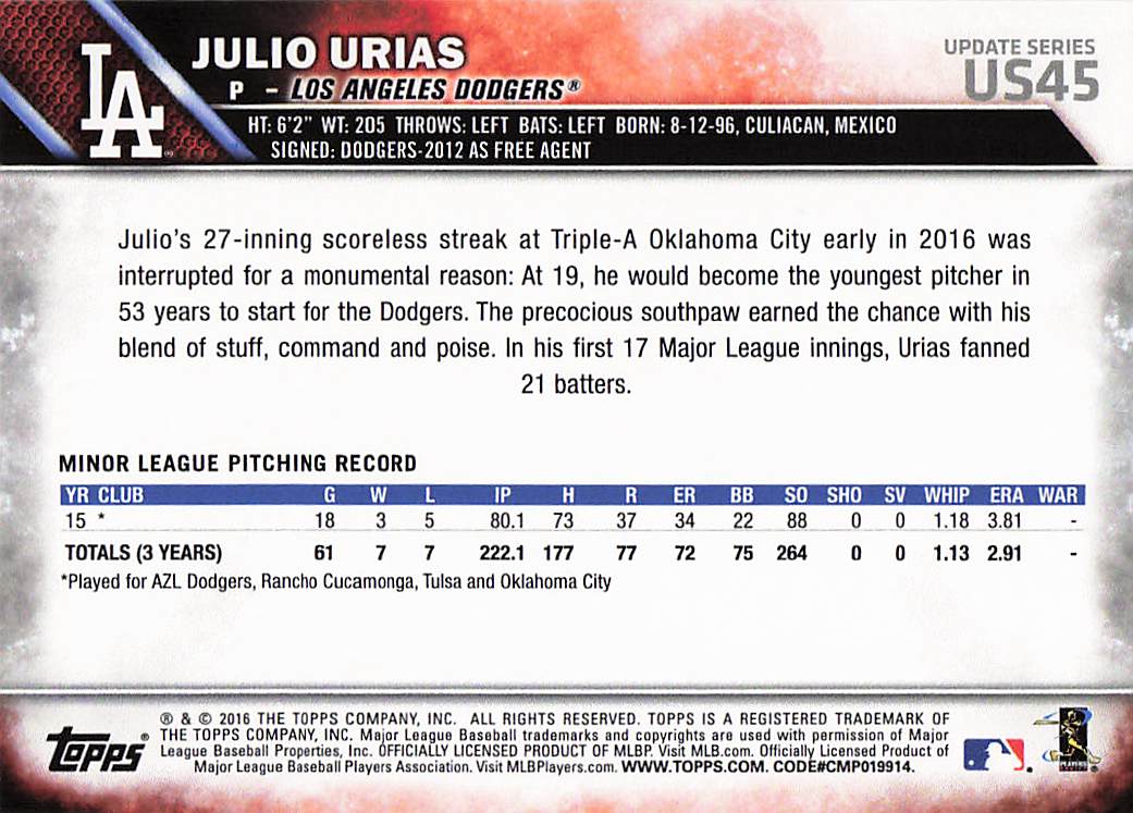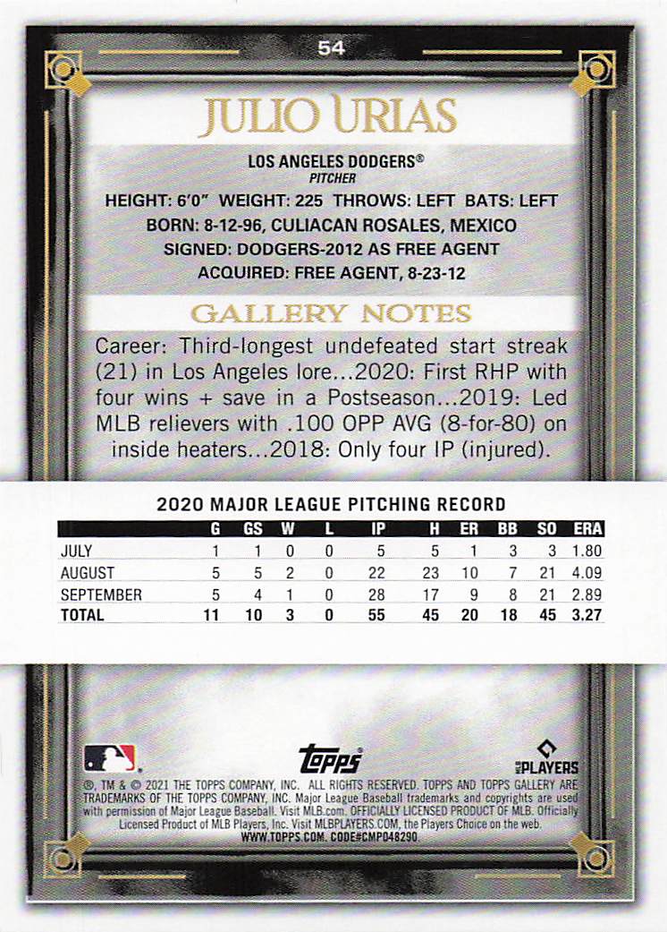2021 Topps Gallery Printer Proof Julio Urias #54