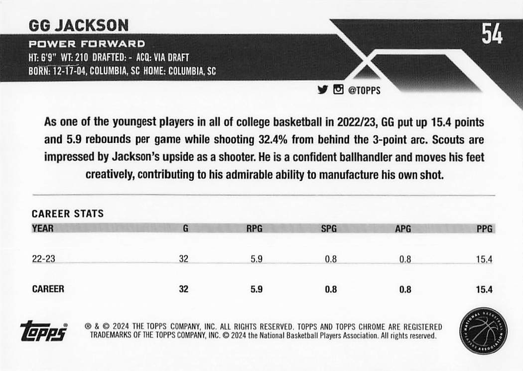 2023-24 Topps Chrome Basketball GG Jackson #54 RC