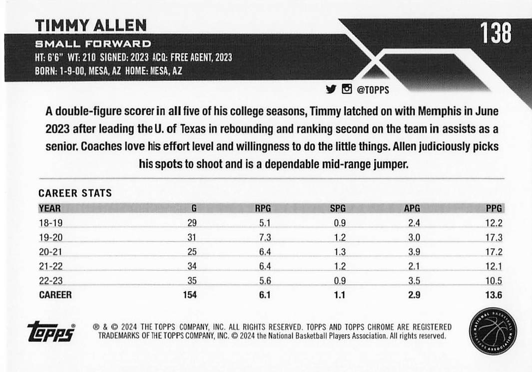 2023-24 Topps Chrome Basketball Timmy Allen #138 RC