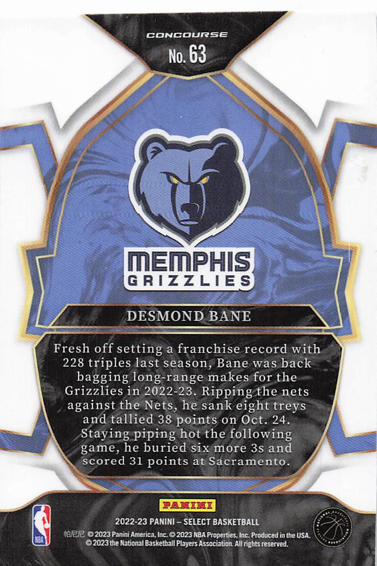 2022-23 Panini Select Basketball Desmond Bane #63