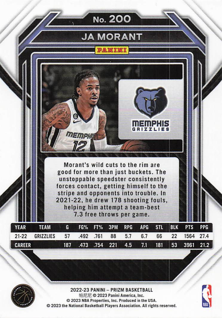 2022-23 Panini Prizm Basketball Ja Morant #200