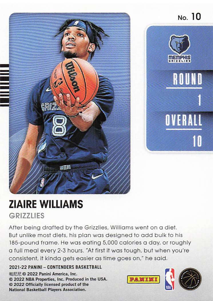 2021-22 Panini Contenders 2021 Draft Class Contenders Ziaire Williams #10 RC