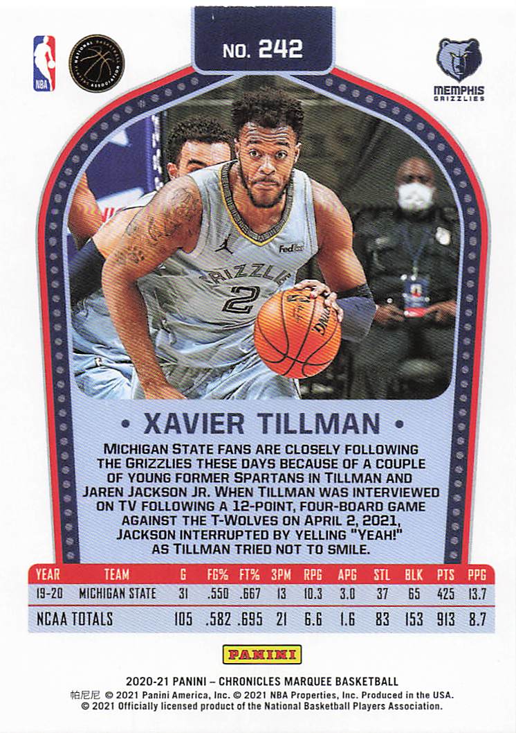 2020-21 Panini Chronicles Marquee Xavier Tillman #242 RC