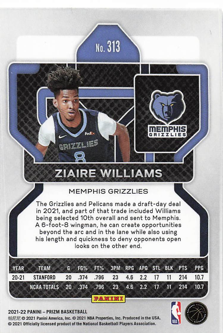 2021-22 Panini Prizm Ziaire Williams #313 RC