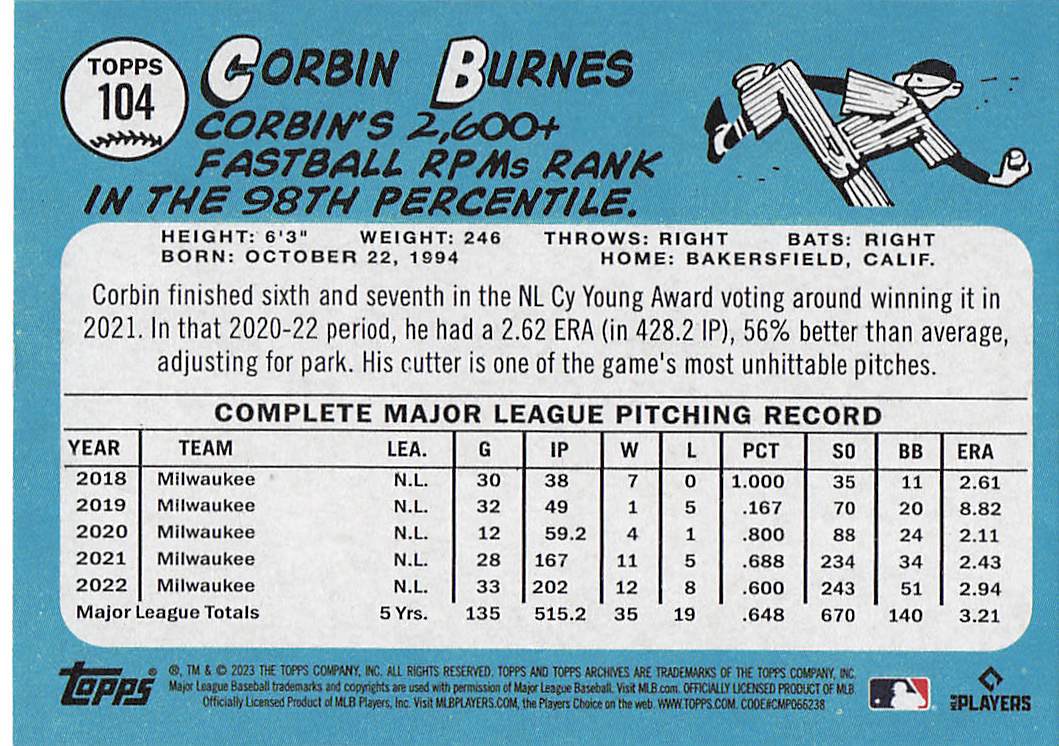 2023 Topps Archives Corbin Burnes #104