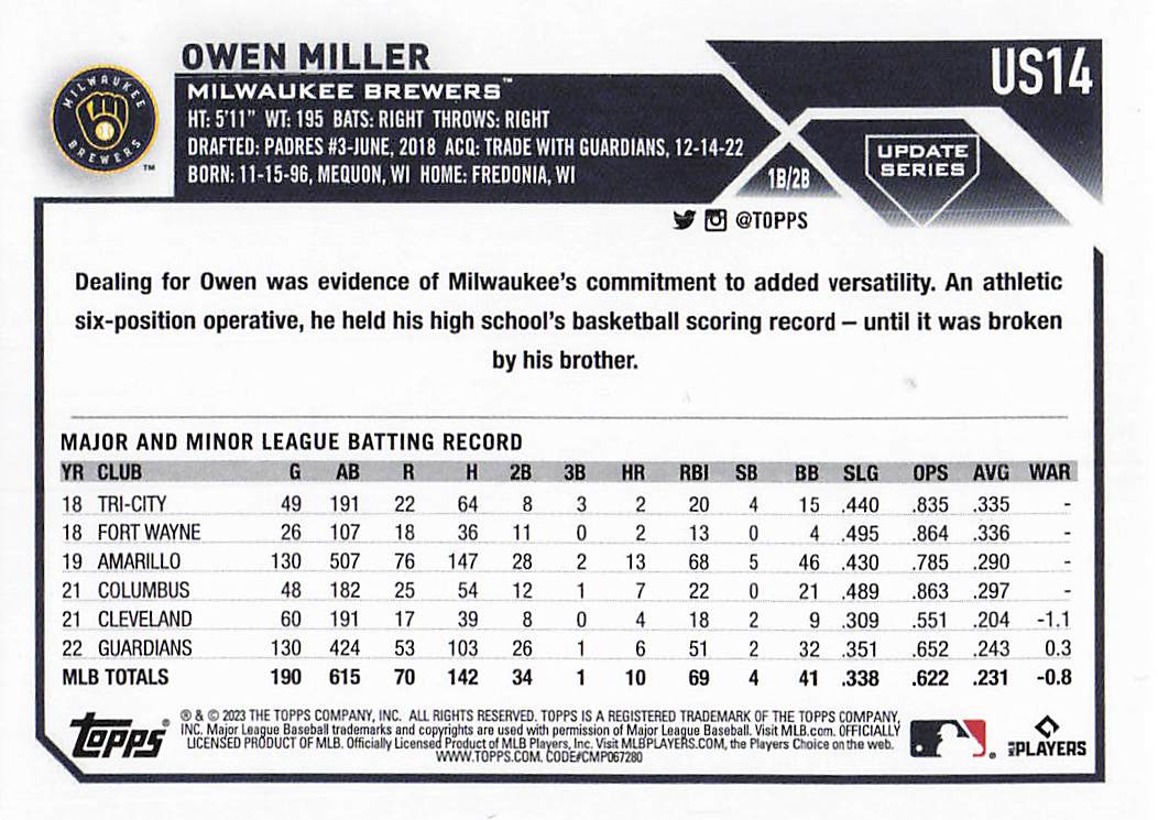 2023 Topps Update Owen Miller #US14