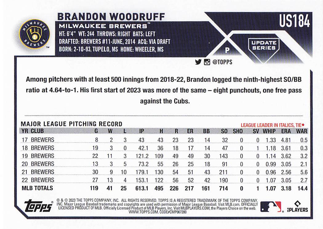 2023 Topps Update Brandon Woodruff #US184