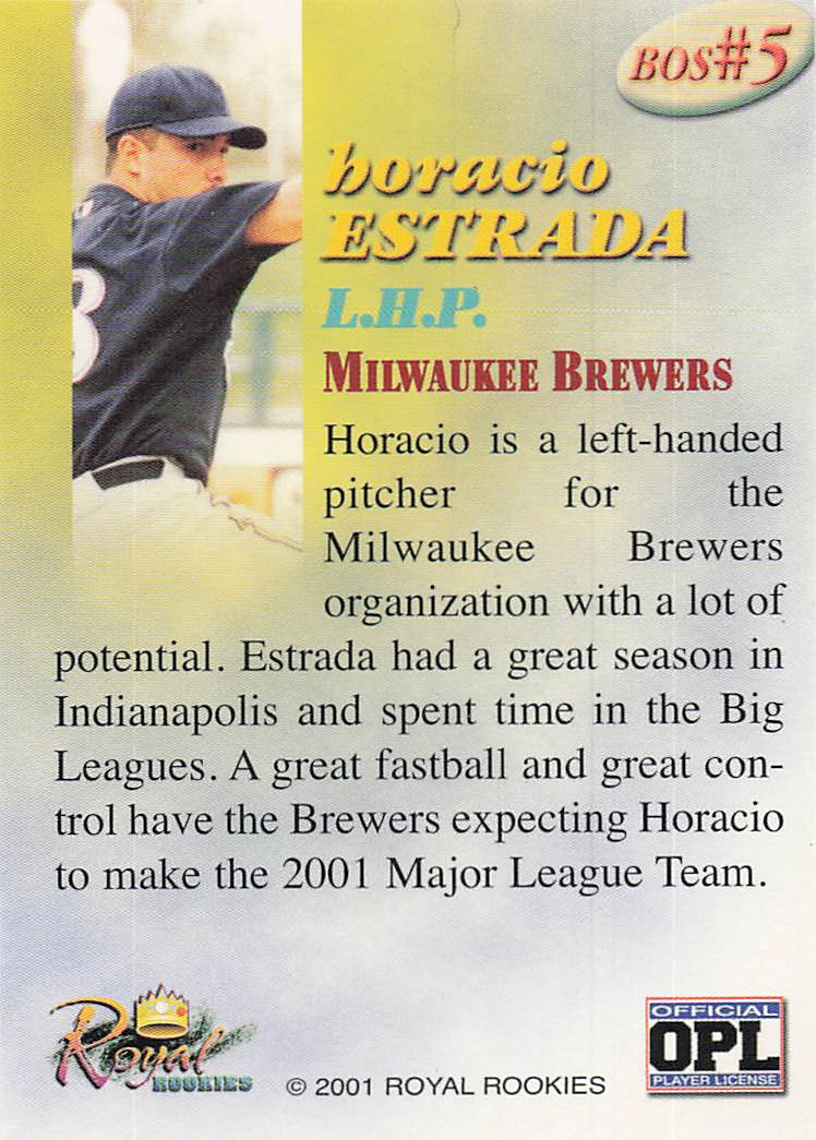 2001 Royal Rookies Throwbacks Boys of Summer Horacio Estrada #BOS#5