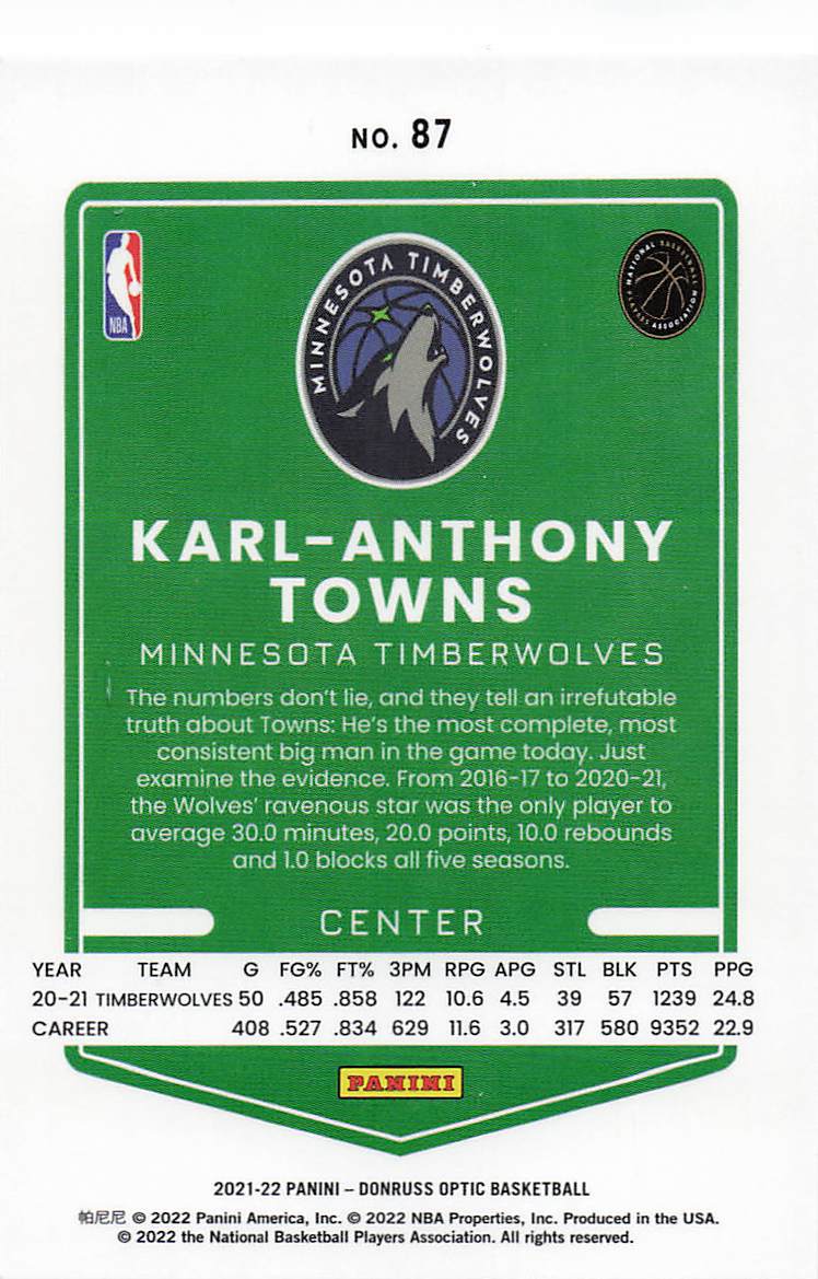 2021-22 Donruss Optic Karl-Anthony Towns #87
