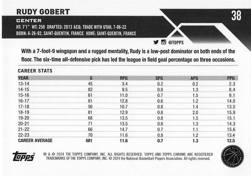 2023-24 Topps Chrome Basketball Rudy Gobert #38