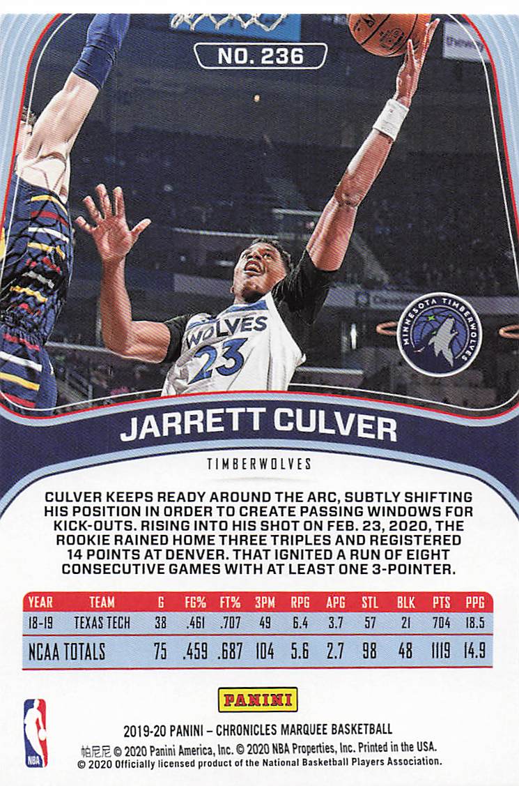 2019-20 Panini Chronicles Basketball Marquee Jarrett Culver #236 RC