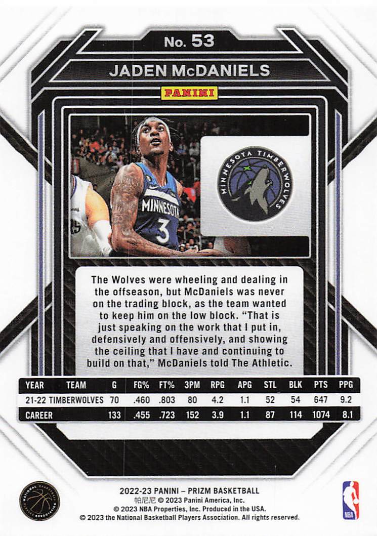 2022-23 Panini Prizm Basketball Jaden McDaniels #53