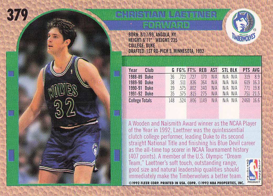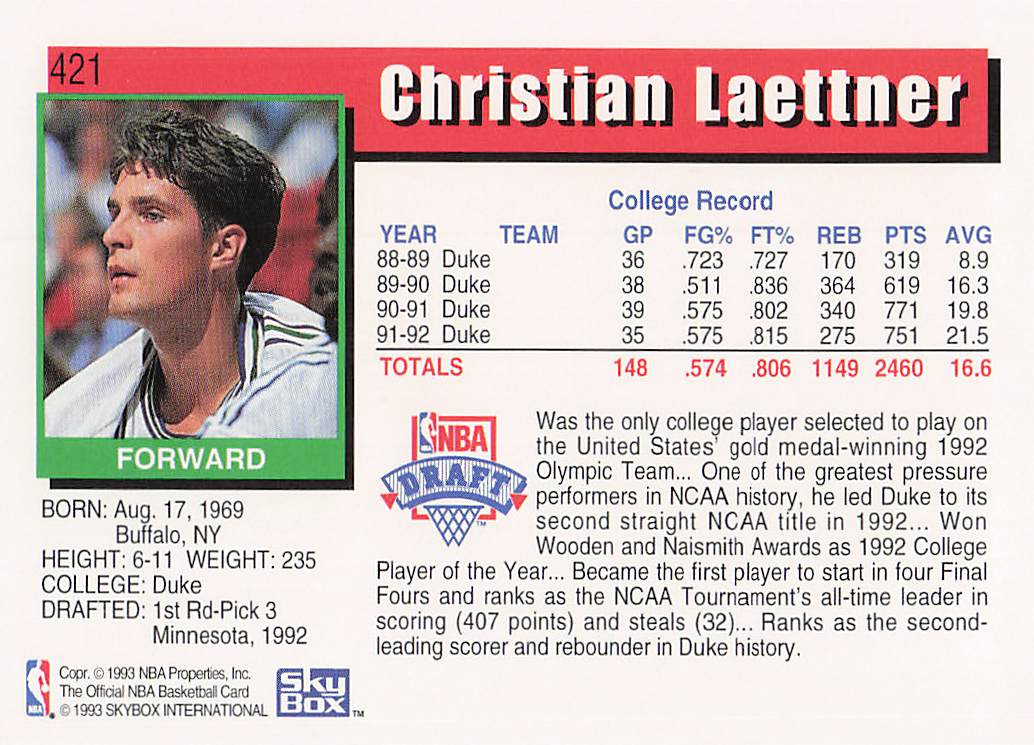 1992-93 NBA Hoops Christian Laettner #421 RC