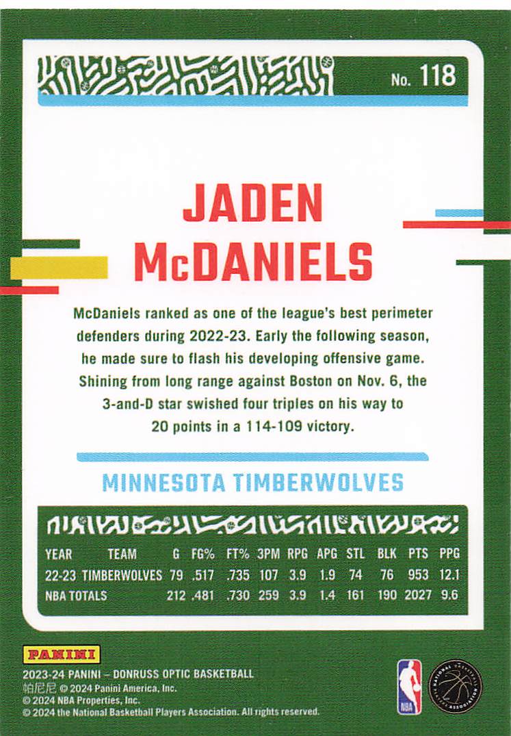 2023-24 Donruss Optic Basketball Jaden McDaniels #118