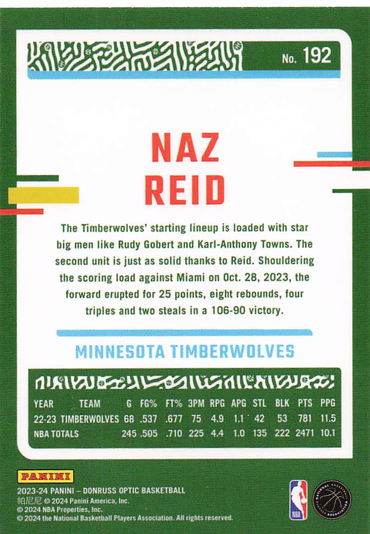 2023-24 Donruss Optic Basketball Naz Reid #192