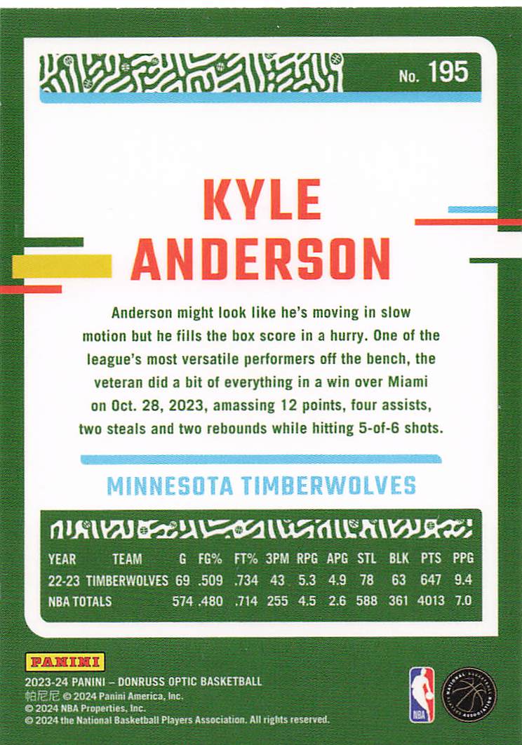 2023-24 Donruss Optic Basketball Kyle Anderson #195