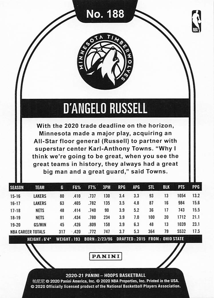 2020-21 Panini Hoops Blue D'Angelo Russell #188