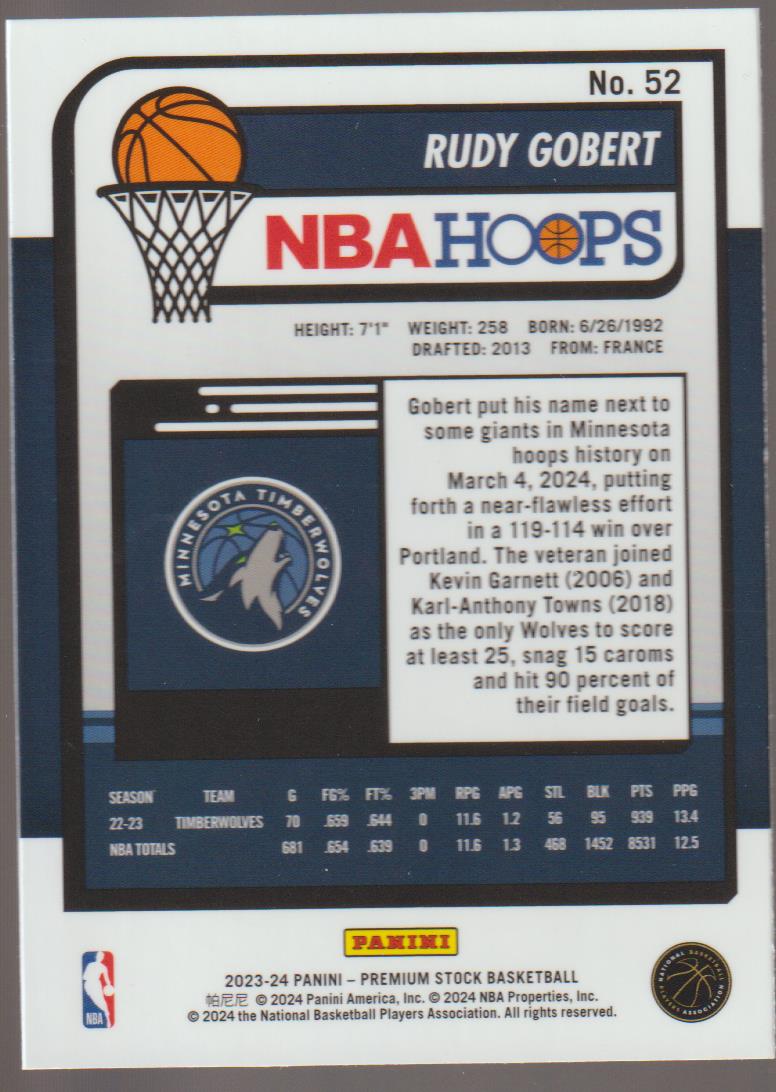 2023-24 Panini NBA Hoops Premium Stock Rudy Gobert #52