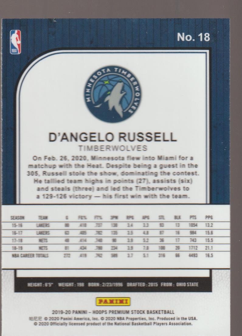 2019-20 Panini NBA Hoops Premium Stock D'Angelo Russell #18