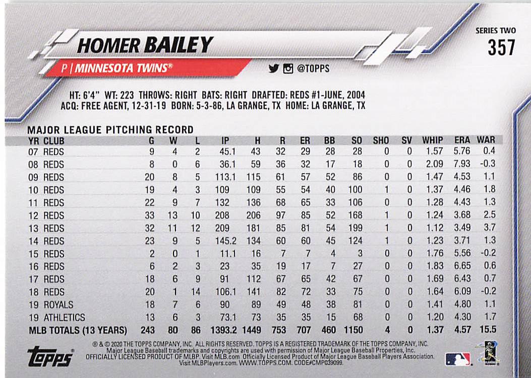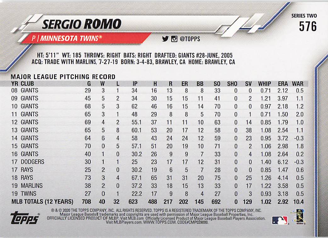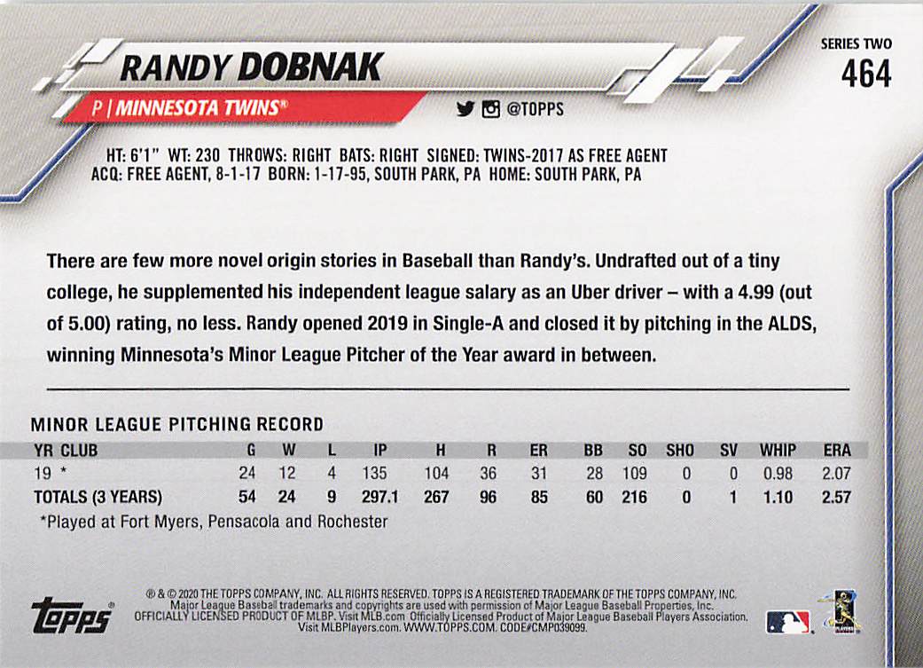 2020 Topps Series 2 Randy Dobnak #464 RC