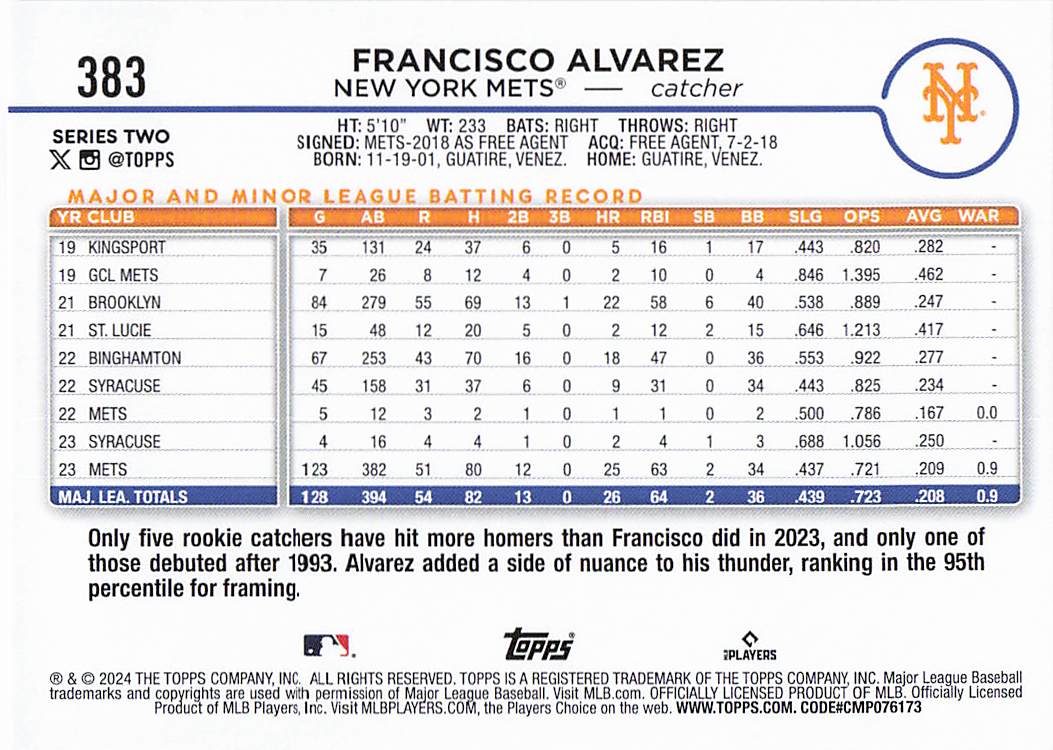2024 Topps Baseball Series 2 Francisco Alvarez #383