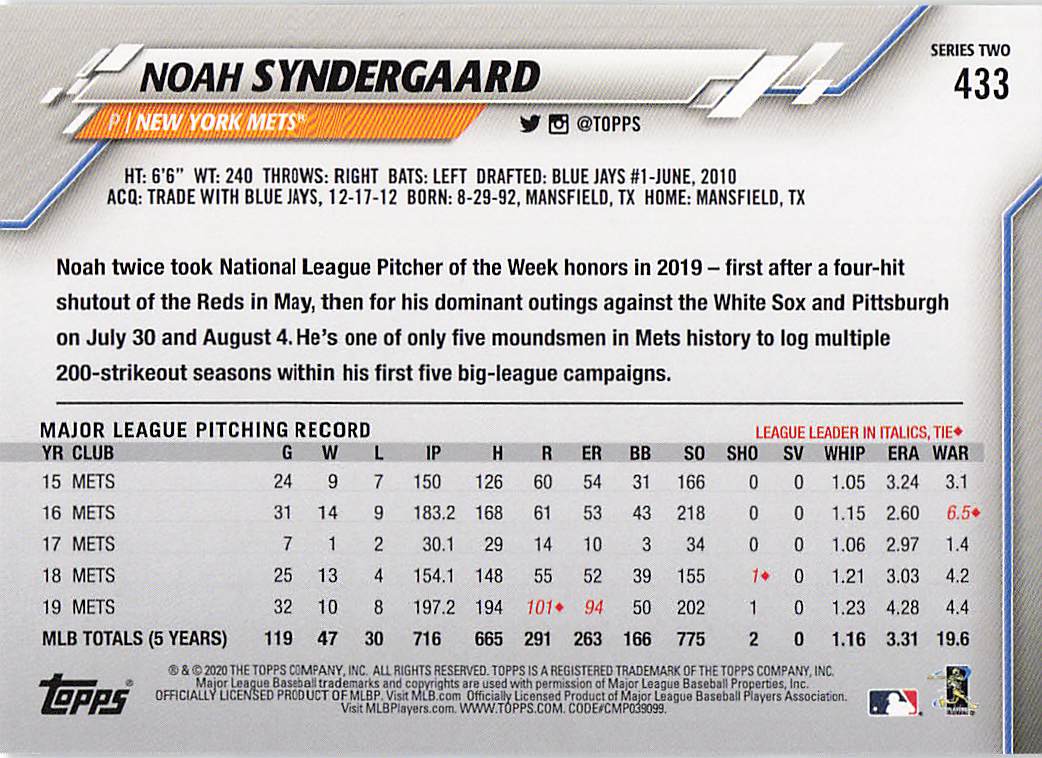 2020 Topps Series 2 Noah Syndergaard #433