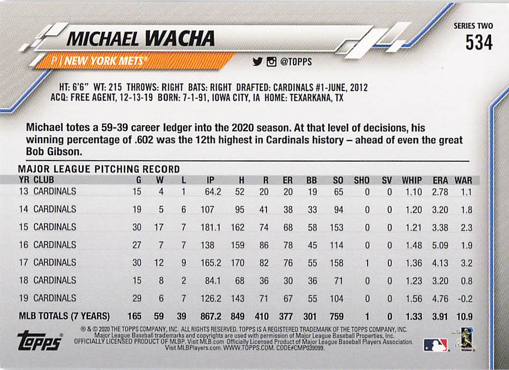 2020 Topps Series 2 Michael Wacha #534
