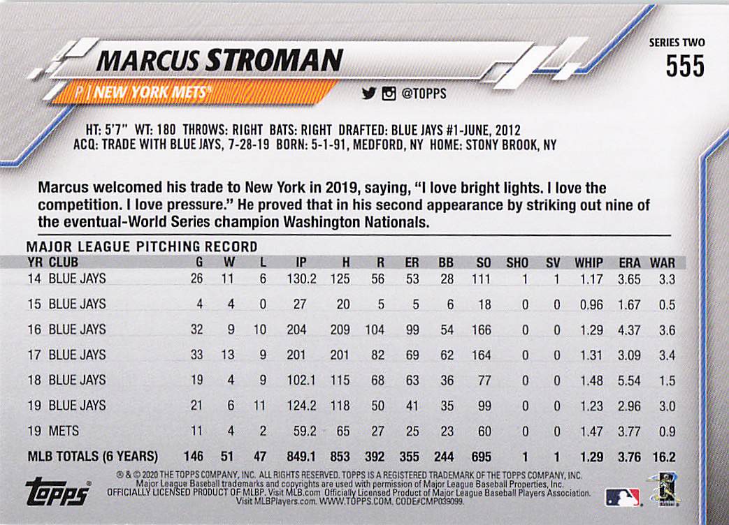 2020 Topps Series 2 Marcus Stroman #555